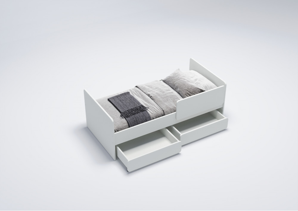 3. Выкатные ящики: Кровать оснащена двумя выкатными вместительными ящиками, которые оборудованы прямоходными колесами для легкости использования. Это удобное решение для хранения игрушек, постельного белья или других вещей.