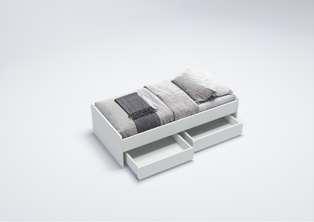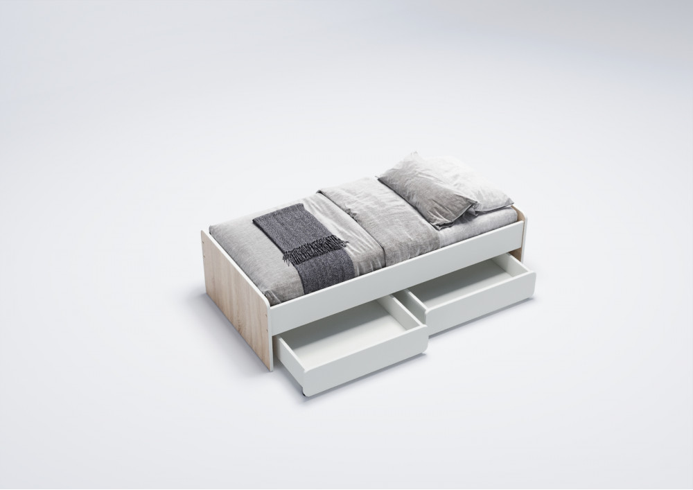 3. Удобство хранения: Кровать оснащена двумя выкатными ящиками на колесиках, которые предоставляют дополнительное место для хранения игрушек, постельного белья или других вещей, что особенно актуально в небольших детских комнатах.
