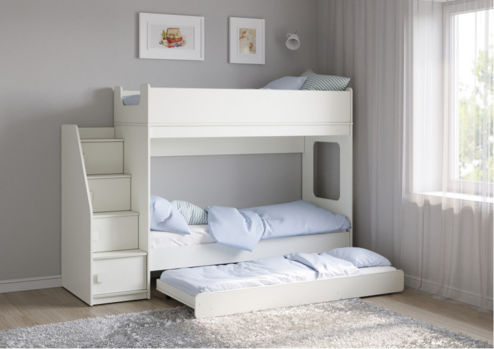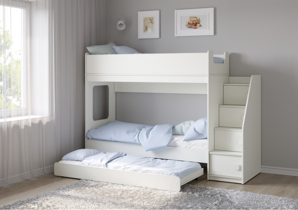 Третье спальное место 1750х750 или 1600х750 выдвижной ярус - представлен большим выкатным ящиком, спроектированным таким образом, что может быть использован и как ящик для хранения вещей, и как отдельное спальное место!