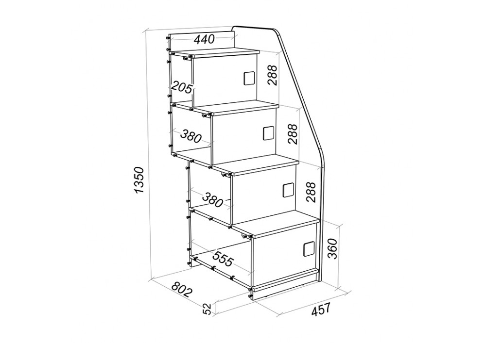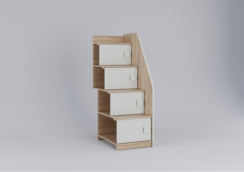 Лестница из 4 ступеней, сочетается со всеми кроватями серии A,B,C,D,E,F. Предназначена для боковой установки к кровати.