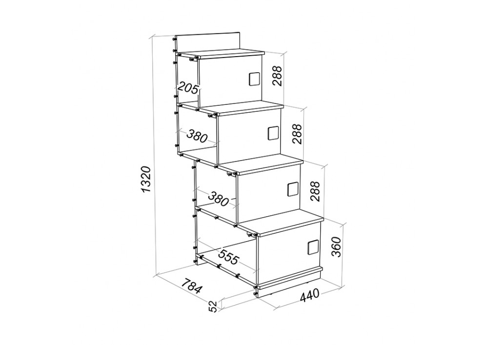 Лестница из 4 ступеней, предназначена для установки между 2-мя кроватями серии A,B,C,D,E,F.
